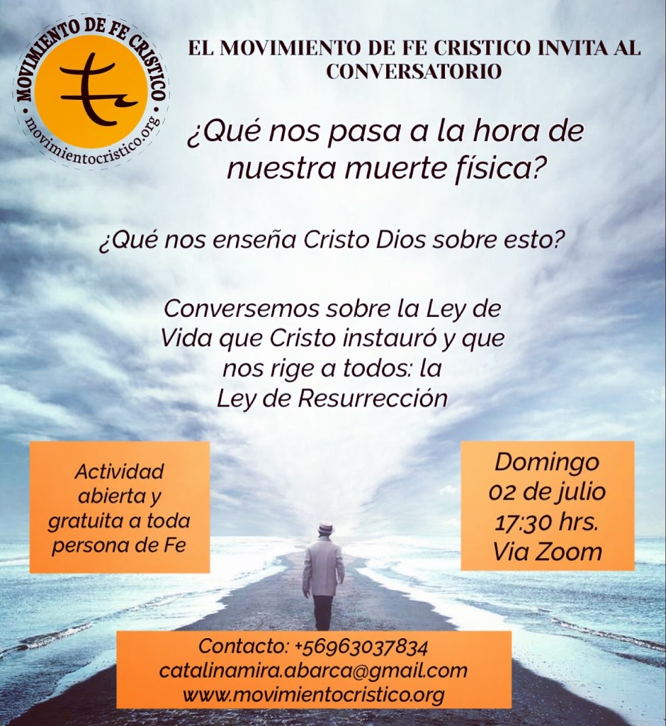 Te invito a participar de este Conversatorio para que hablemos sobre la Ley de Vida que nos rige y que Cristo cuan Dios instauró en su paso por este mundo: la Ley de Resurrección.